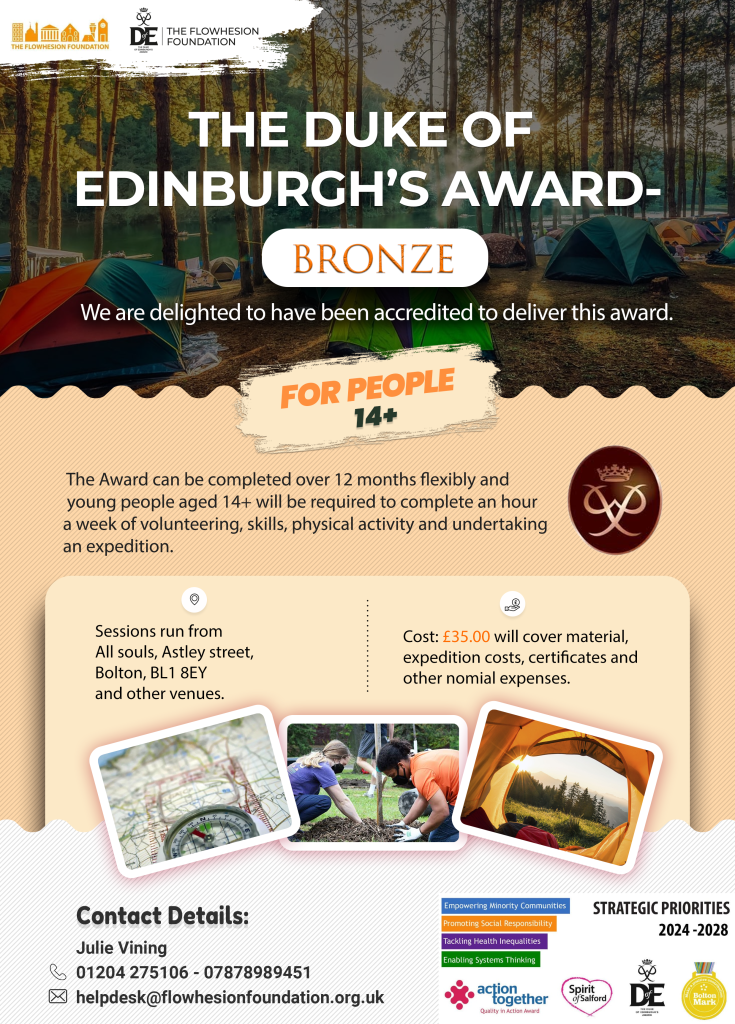 Our learners are also able to take part in the Duke of Edinburgh award with Flowhesion, who are able to offer funded places. Please see the posters with more information for contact details below.